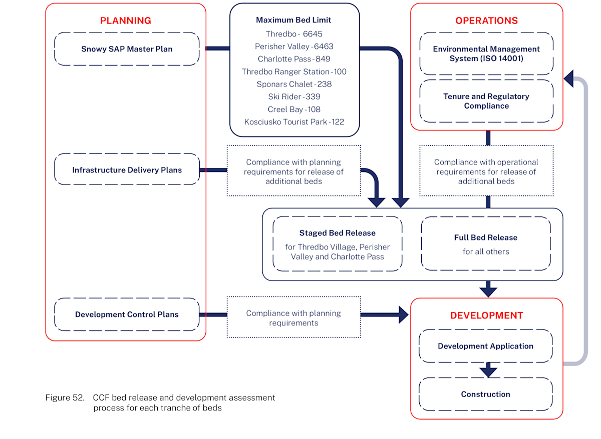 Decisions regarding additional accommodation capacity will be based on the Alpine DCP's carrying capacity provisions and the Kosciuszko National Park (KNP) Plan of Management, ensuring sustainable development in the Alpine Region.