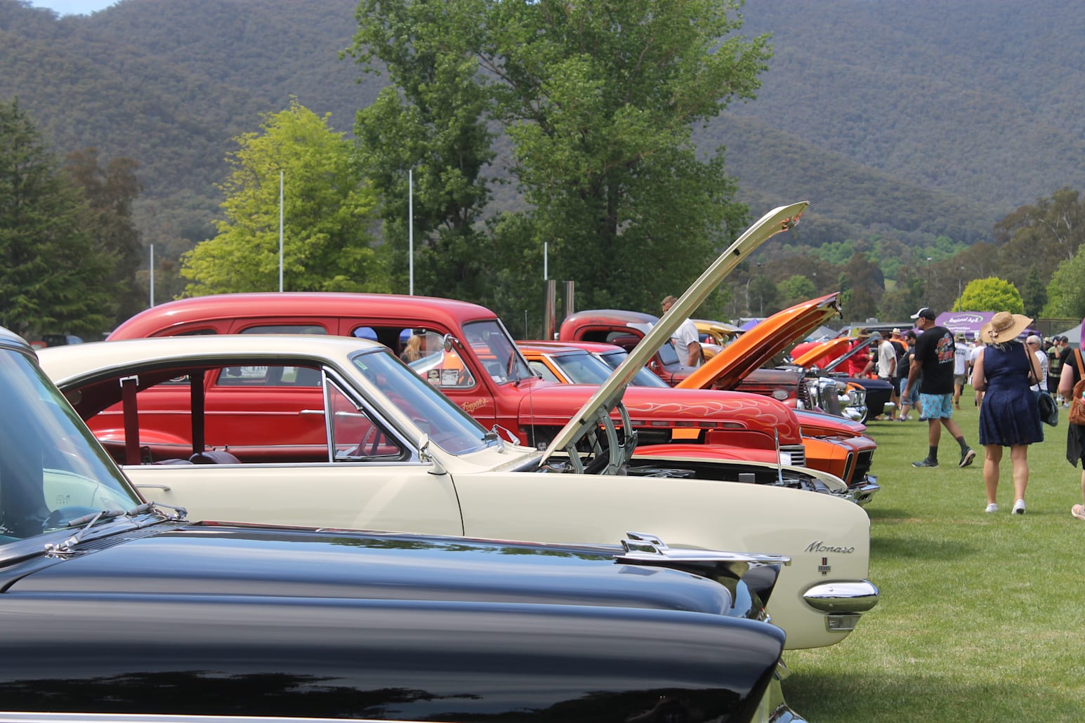 Merchandise and food stalls were set up along the boundary line of the Pioneer Park Oval as classic cars which had won previous awards were carefully lined up in the middle of the oval for attendees to admire.