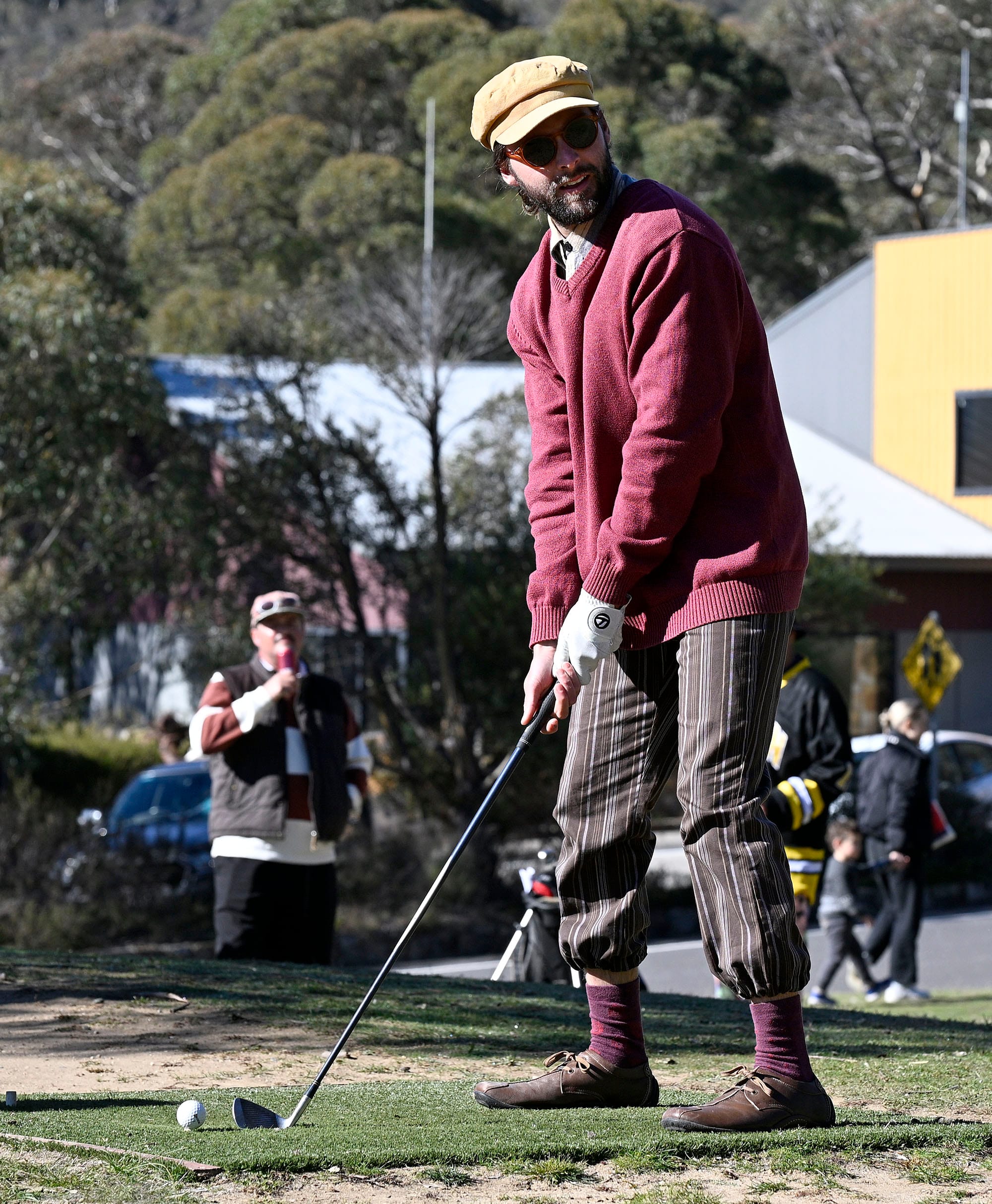 The par-3 Lake Crackenback Resort course was a mix of golfing abilities and the colours of impressive outfits, but golf was secondary for 40 participants, with fun as the main objective.