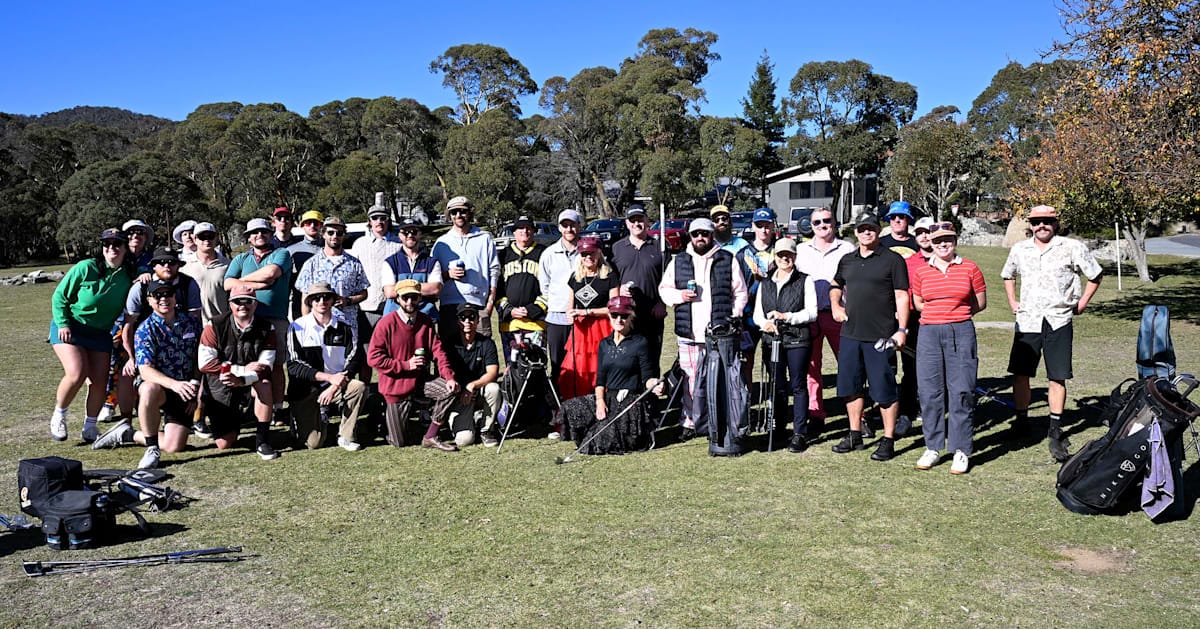 The par-3 Lake Crackenback Resort course was a mix of golfing abilities and the colours of impressive outfits, but golf was secondary for 40 participants, with fun as the main objective.
