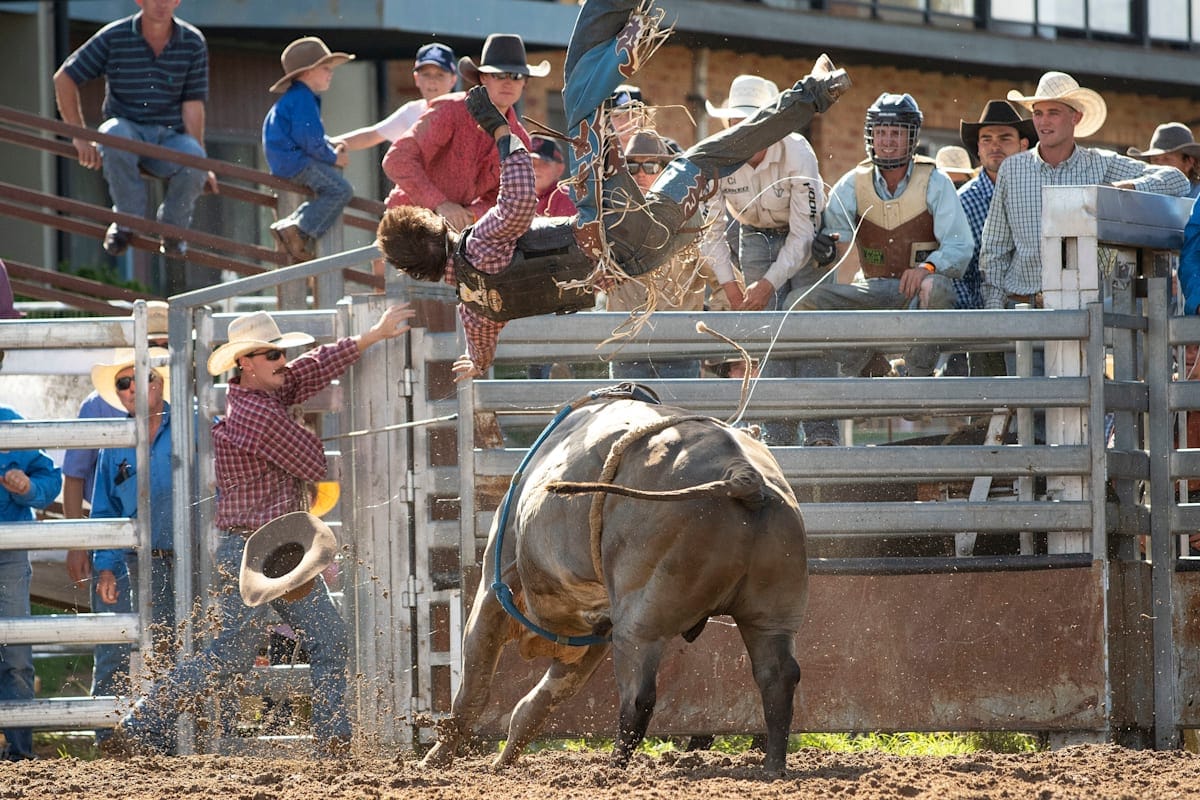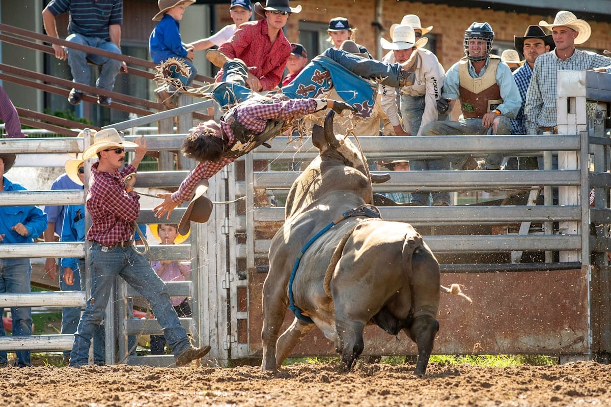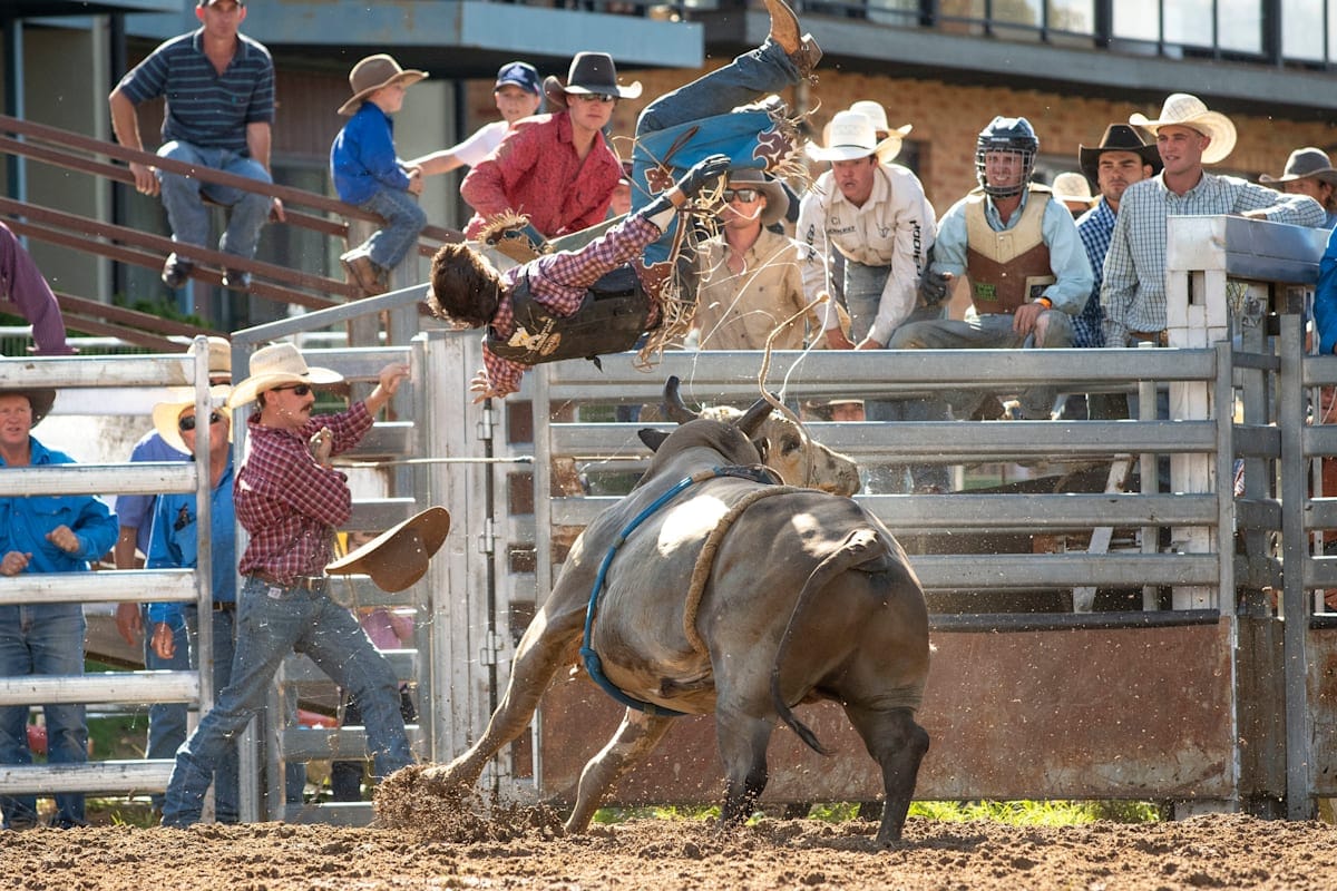 There are two main circuits in Australia for rodeo, the Australian Bushmen’s Campdraft and Rodeo Association (ABCRA) which includes Jindabyne, Man for Snowy River Rodeo (Dec 28) and the Australian Professional Rodeo Association (APRA) which includes the Tumbarumba Rodeo on January 1, and the Tumut Rodeo (April21).