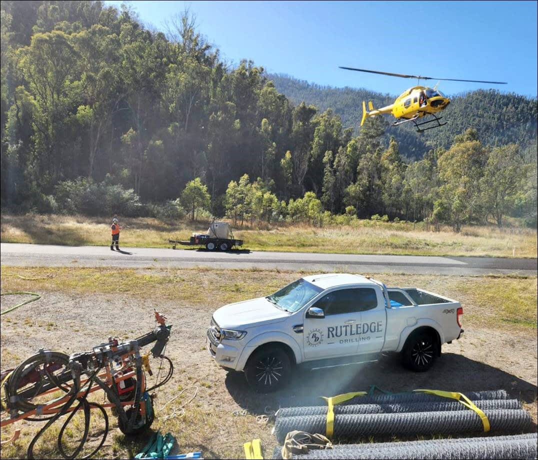 - The drilling equipment and other materials were flown in on Saturday 25 February which allowed the drill rigs to be set up on Sunday, as well as installation of access track and stairs.