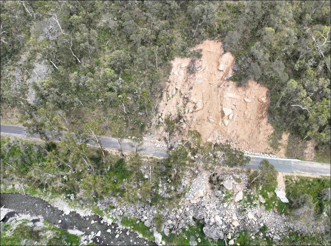 The actual landslip is just south of O’hares Campground on the Cabramurra side. O’hares Campground is still accessible from the Tumbarumba side. The road is closed from the Link Road intersection near Cabramurra to O’hares Campground, the closure easily identifiable on the LiveTraffic.com website.