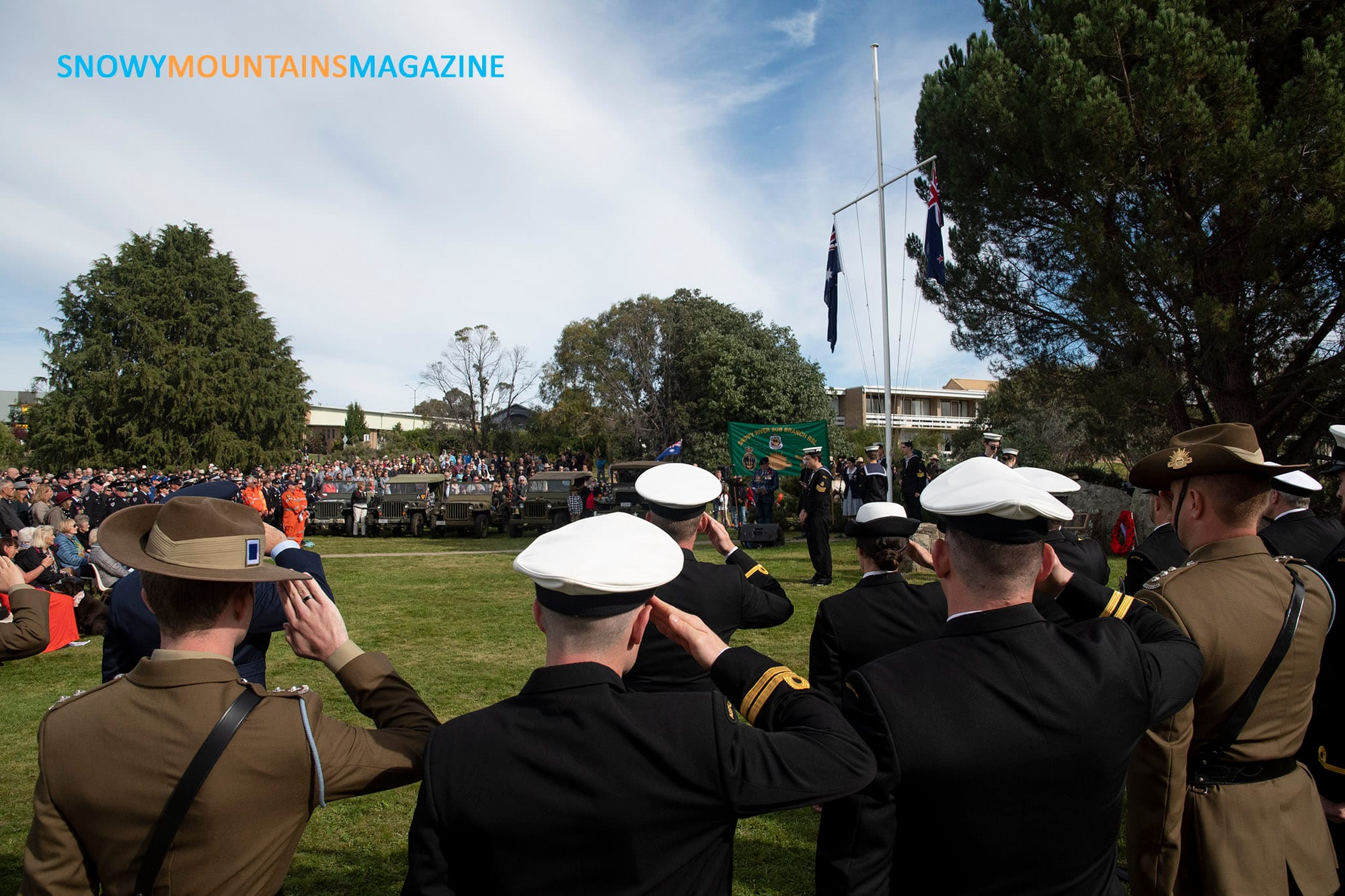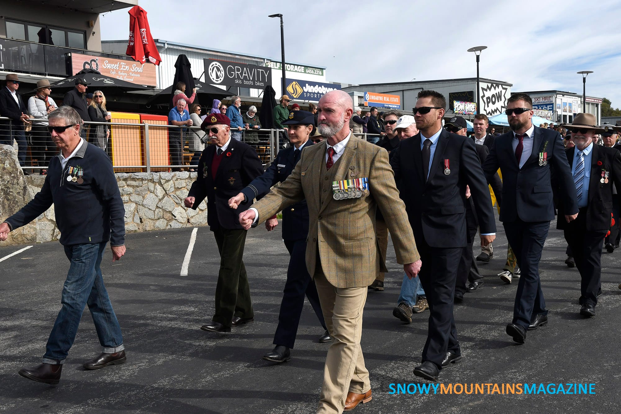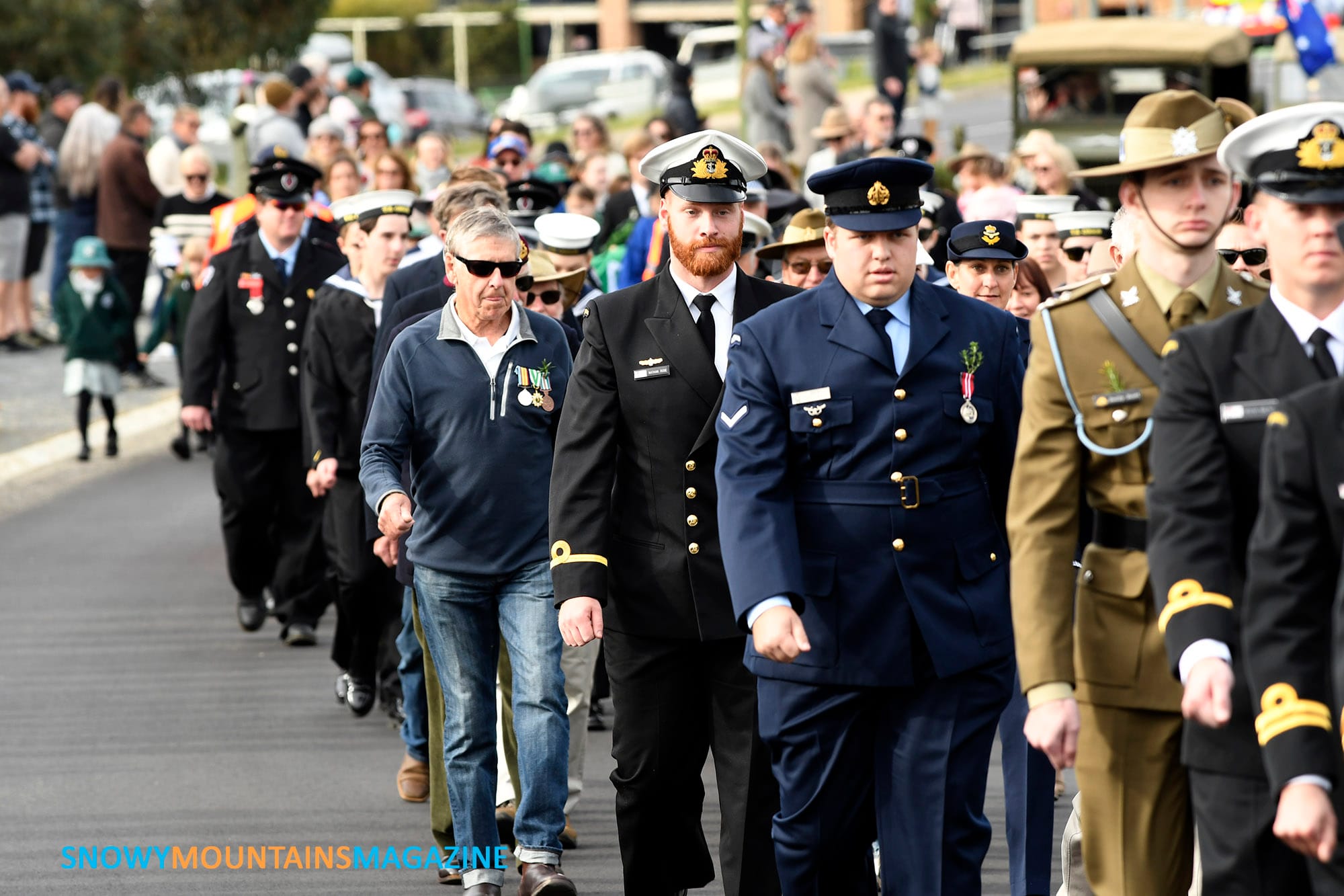 A large crowd gathered in Jindabyne for both the Anzac Day dawn and mid morning service and march.
