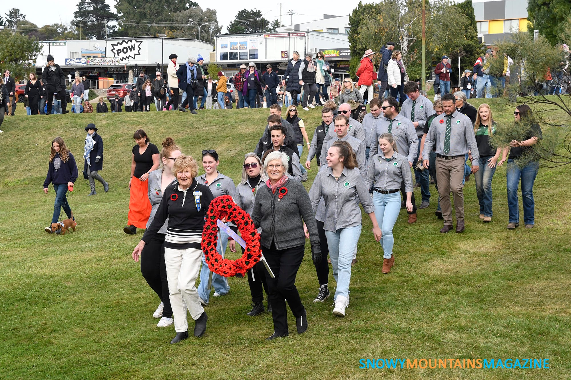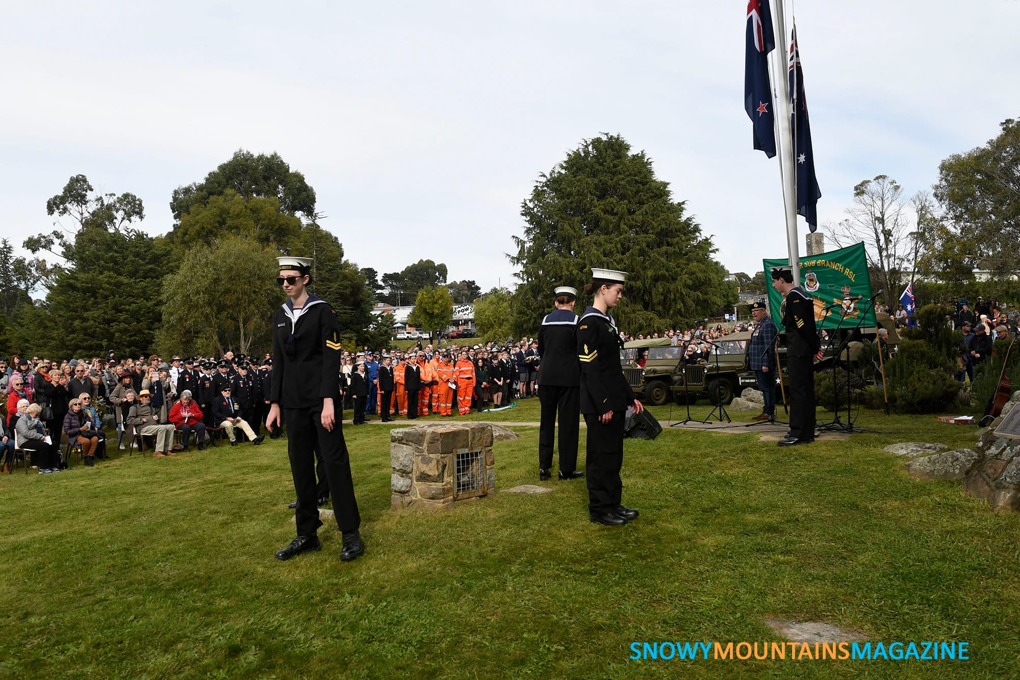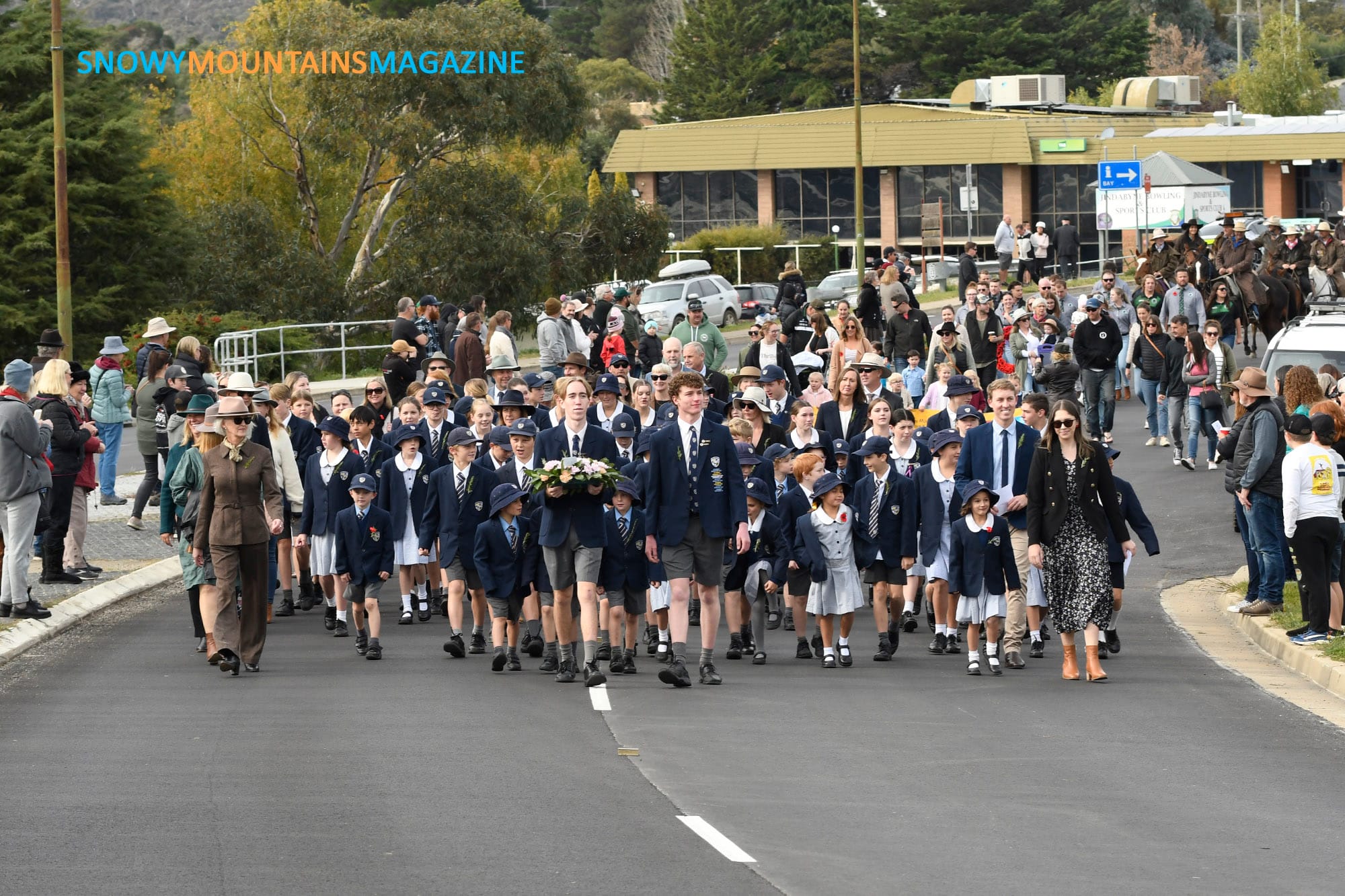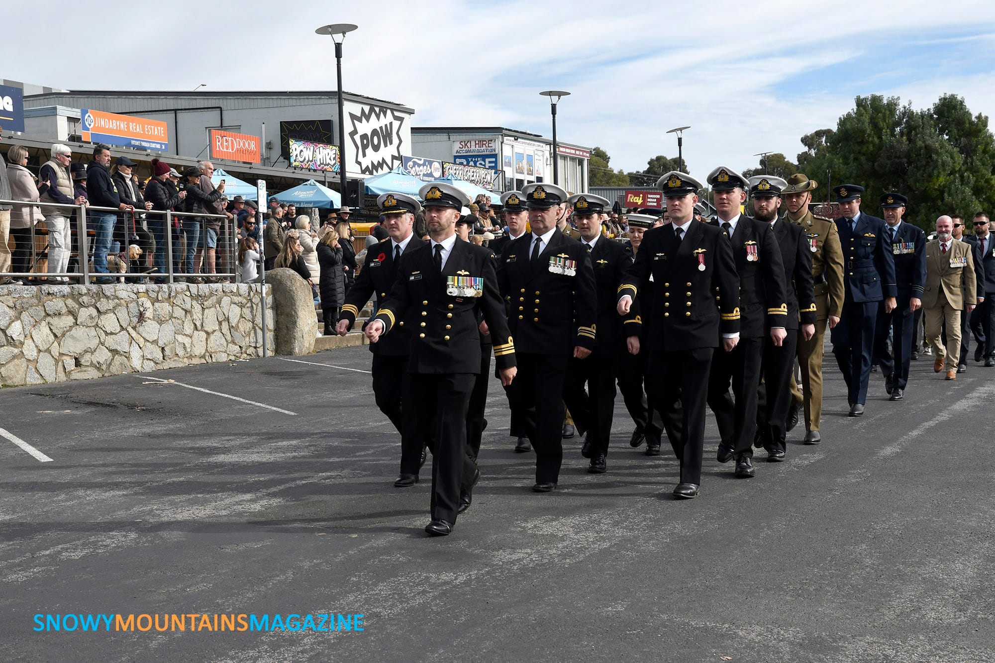 A large crowd gathered in Jindabyne for both the Anzac Day dawn and mid morning service and march.