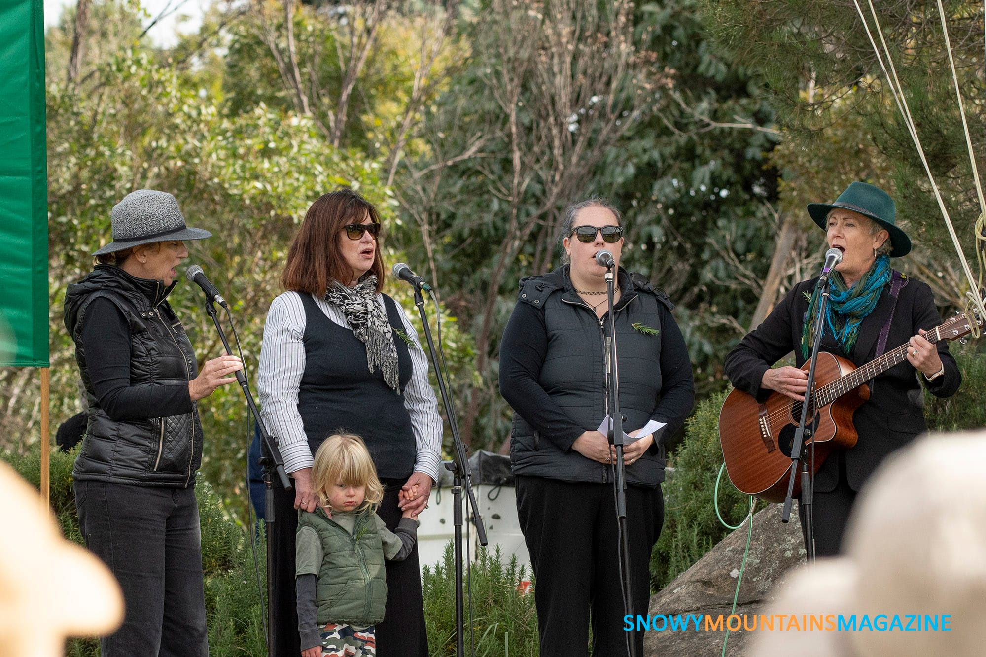 The mid-morning march was well attended with participants marching from the Town Centre on a revised route due to the high water of Lake Jindabyne crossing the lake foreshore path.