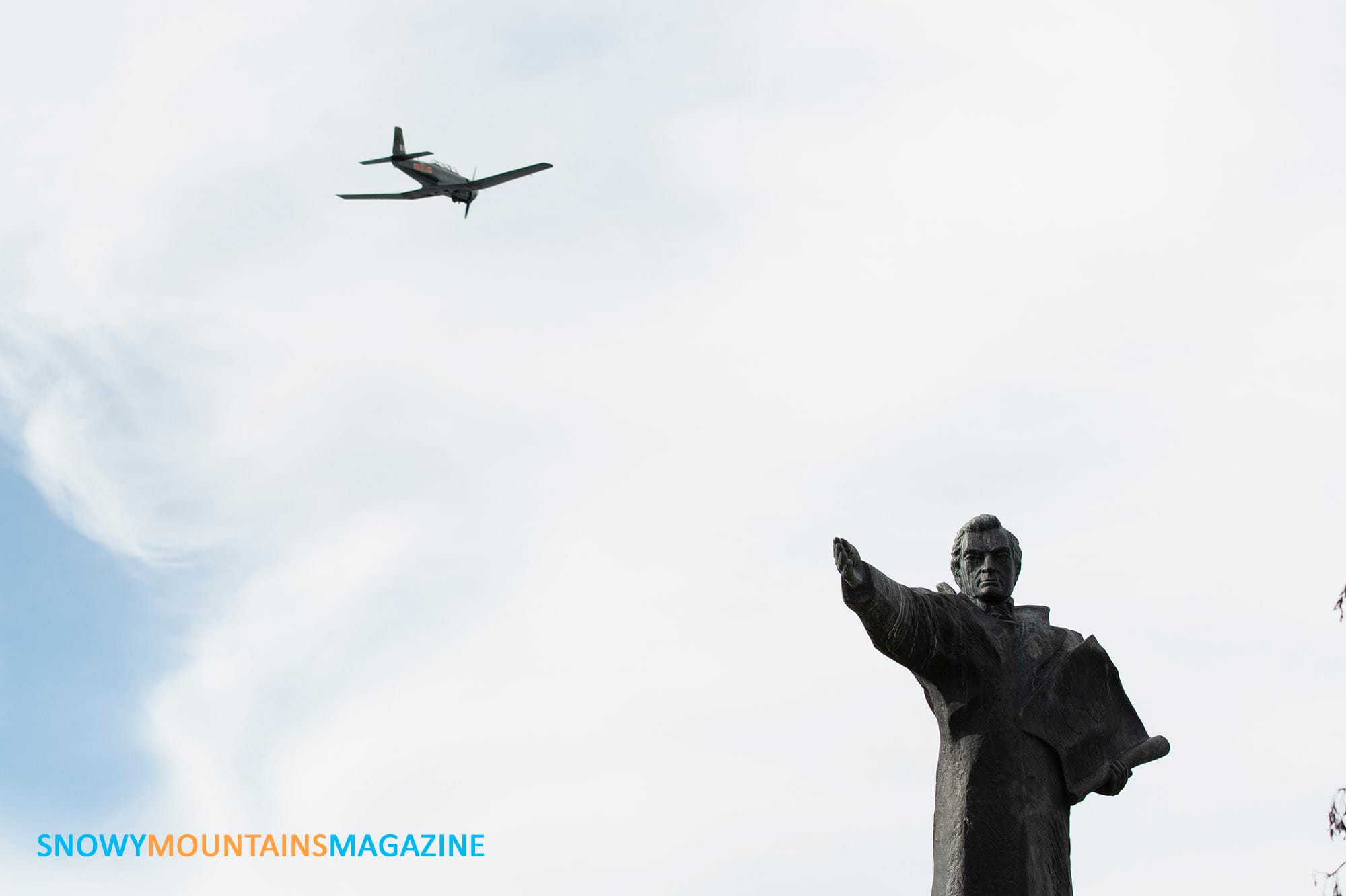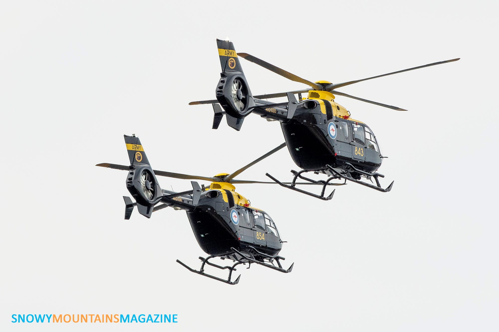 The 723 Squadron is a joint helicopter school based at Nowra’s HMAS Albatross base who take on both army and navy students coming out of advanced flying training. The helicopter flyover during the mid morning ceremony was part of the squadron who had made the flight from Nowra to Jindabyne and return.