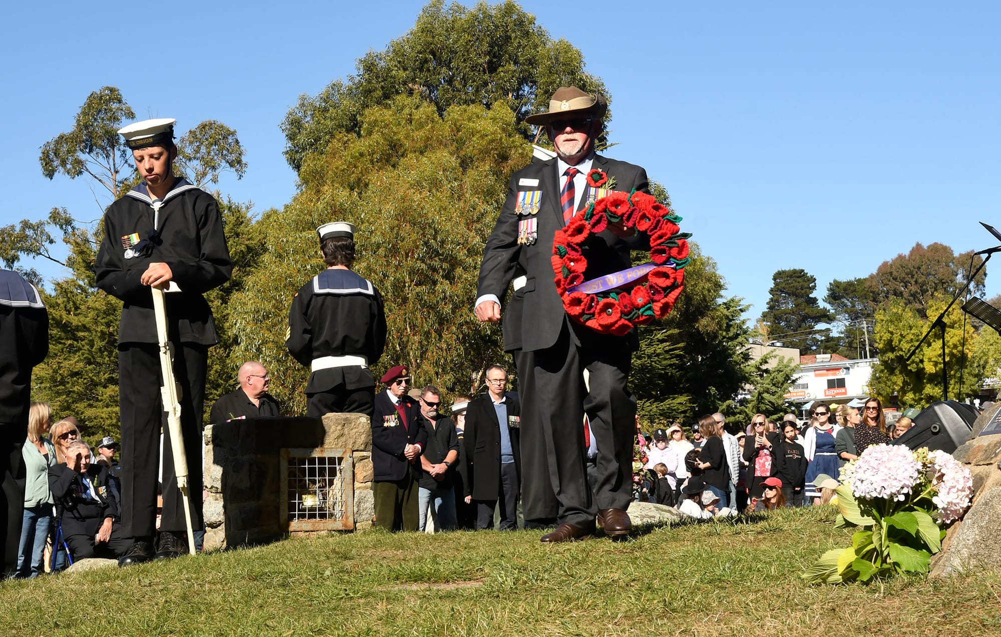 It was estimated up to 2000 people were at the Dawn Service in Banjo Paterson Park. For the annual parade from the Town Centre to the mid morning ceremony, hundreds lined the streets and watched as Navy personnel from HMAS Albatross, veterans, relatives of those who fought, schools and community groups marched proudly to honour the ANZACS.