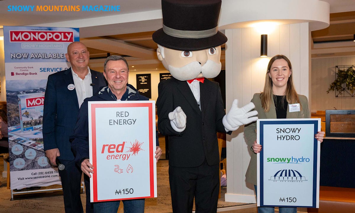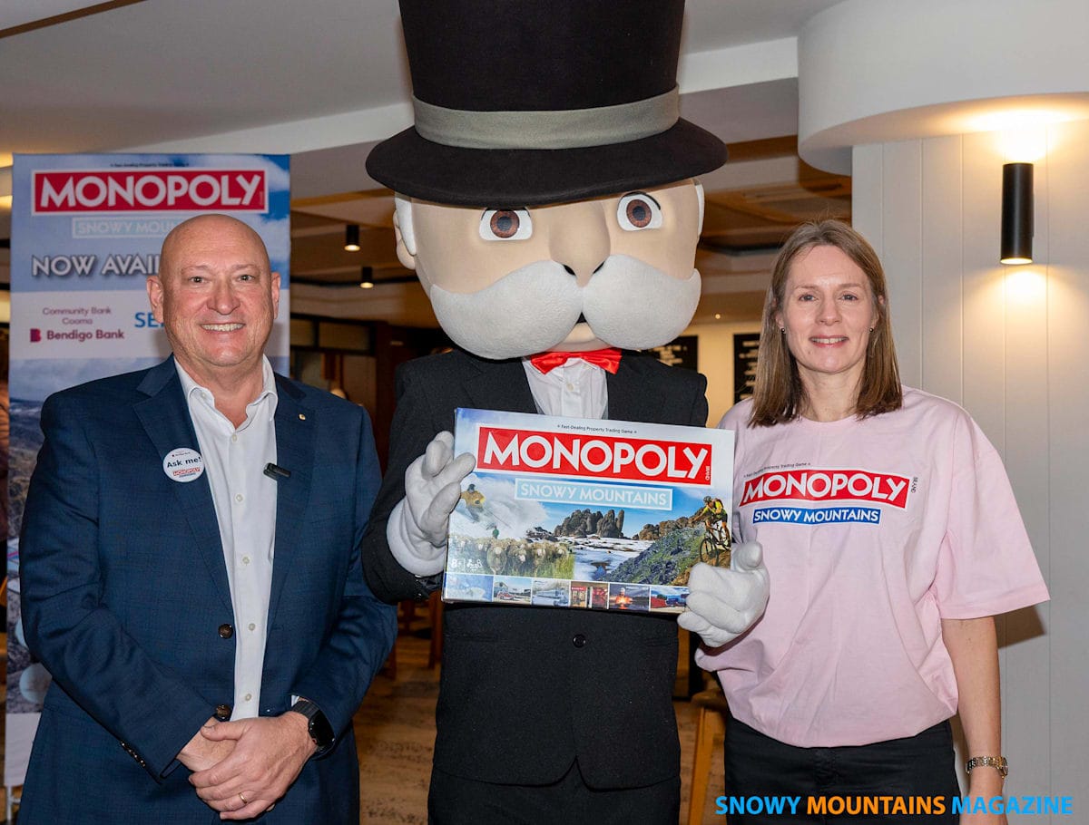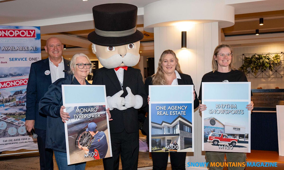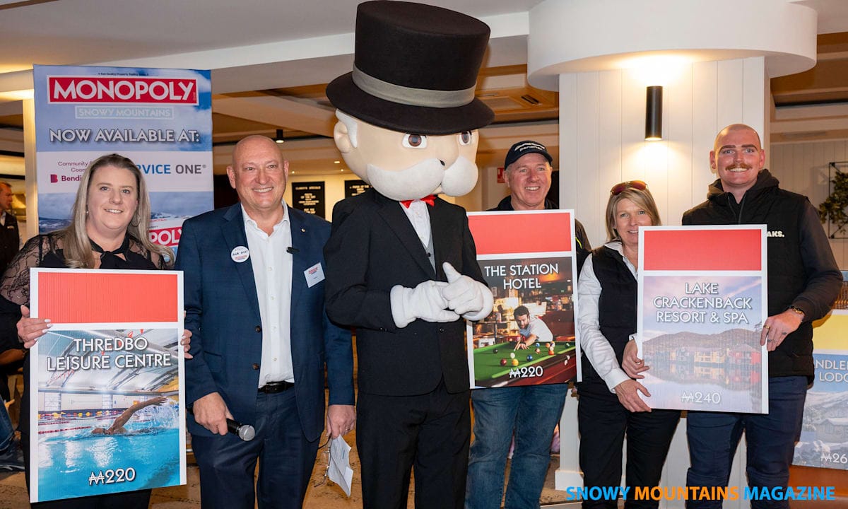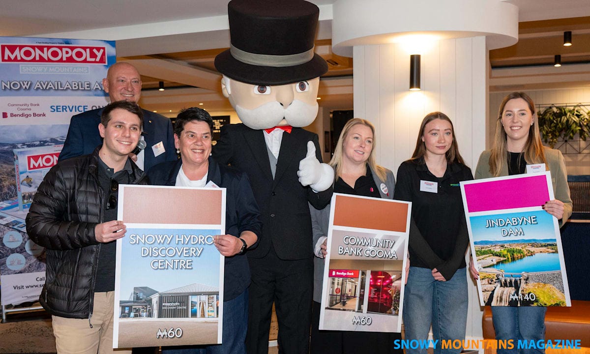 THE Monopoly Snowy Mountains game was launched today at the Banjo Paterson Inn in Jindabyne. Special guest was Mr Monopoly, who happily joined for photos as businesses who have positions on the board were presented with an enlarged version of their card.