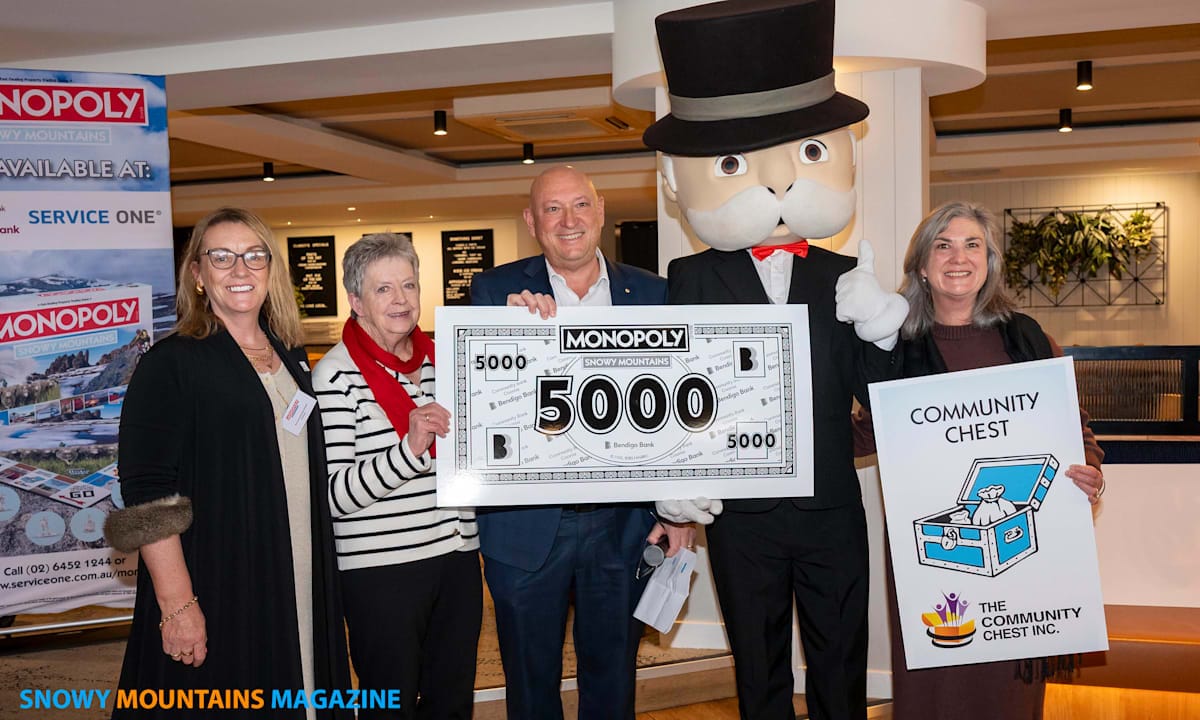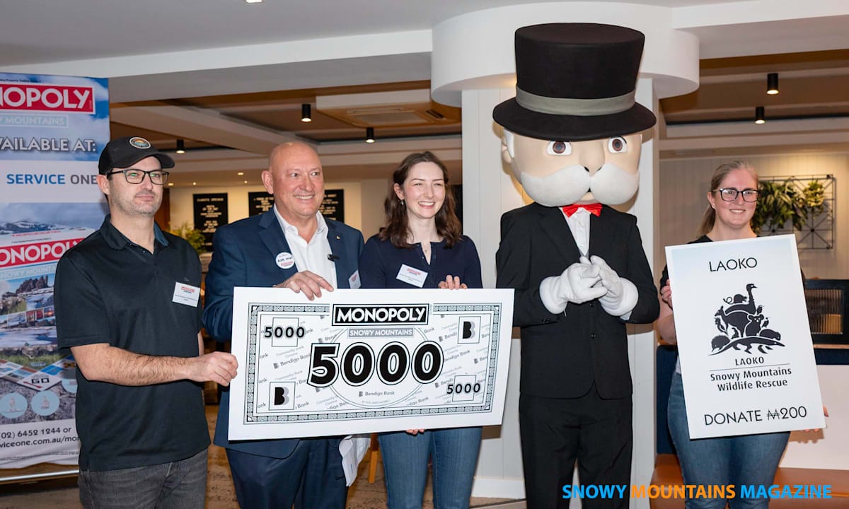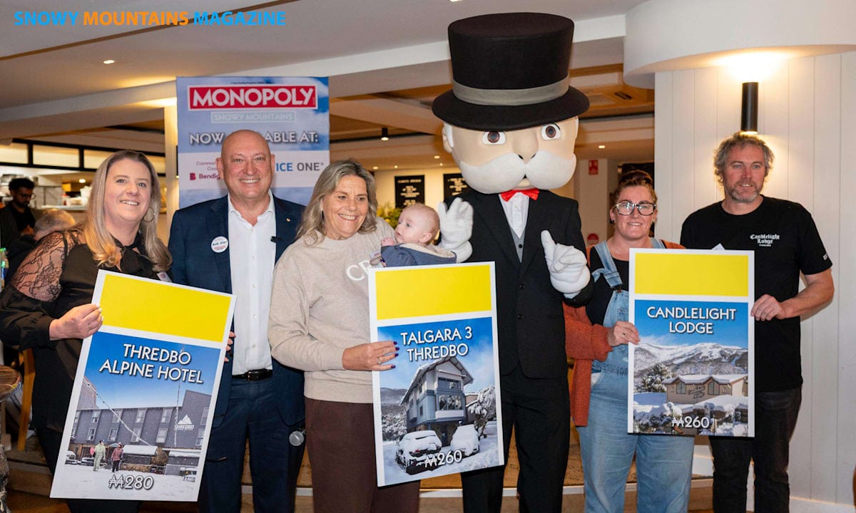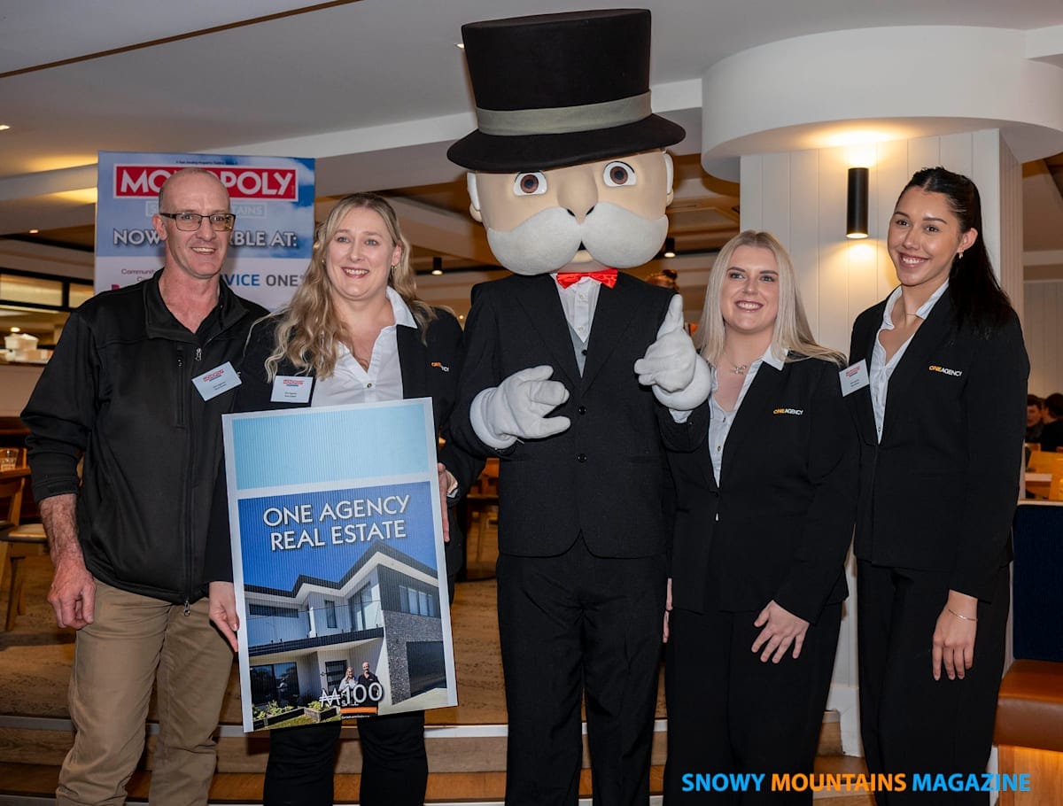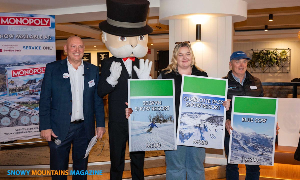 THE Monopoly Snowy Mountains game was launched today at the Banjo Paterson Inn in Jindabyne. Special guest was Mr Monopoly, who happily joined for photos as businesses who have positions on the board were presented with an enlarged version of their card.