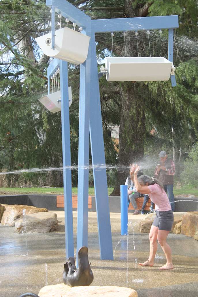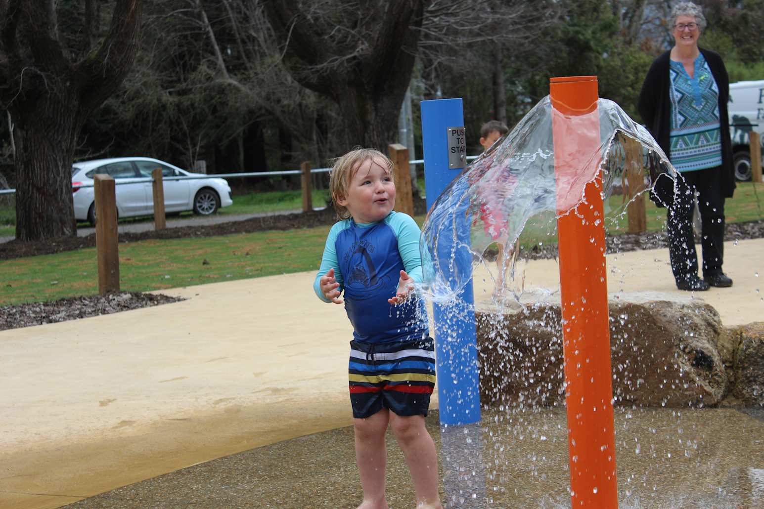 The few attendees who braved the cool weather to check out the splash park in action, spent an enjoyable 40 minutes dashing under the fountains and sprinklers, before the wind picked up and they had to get rugged up again.