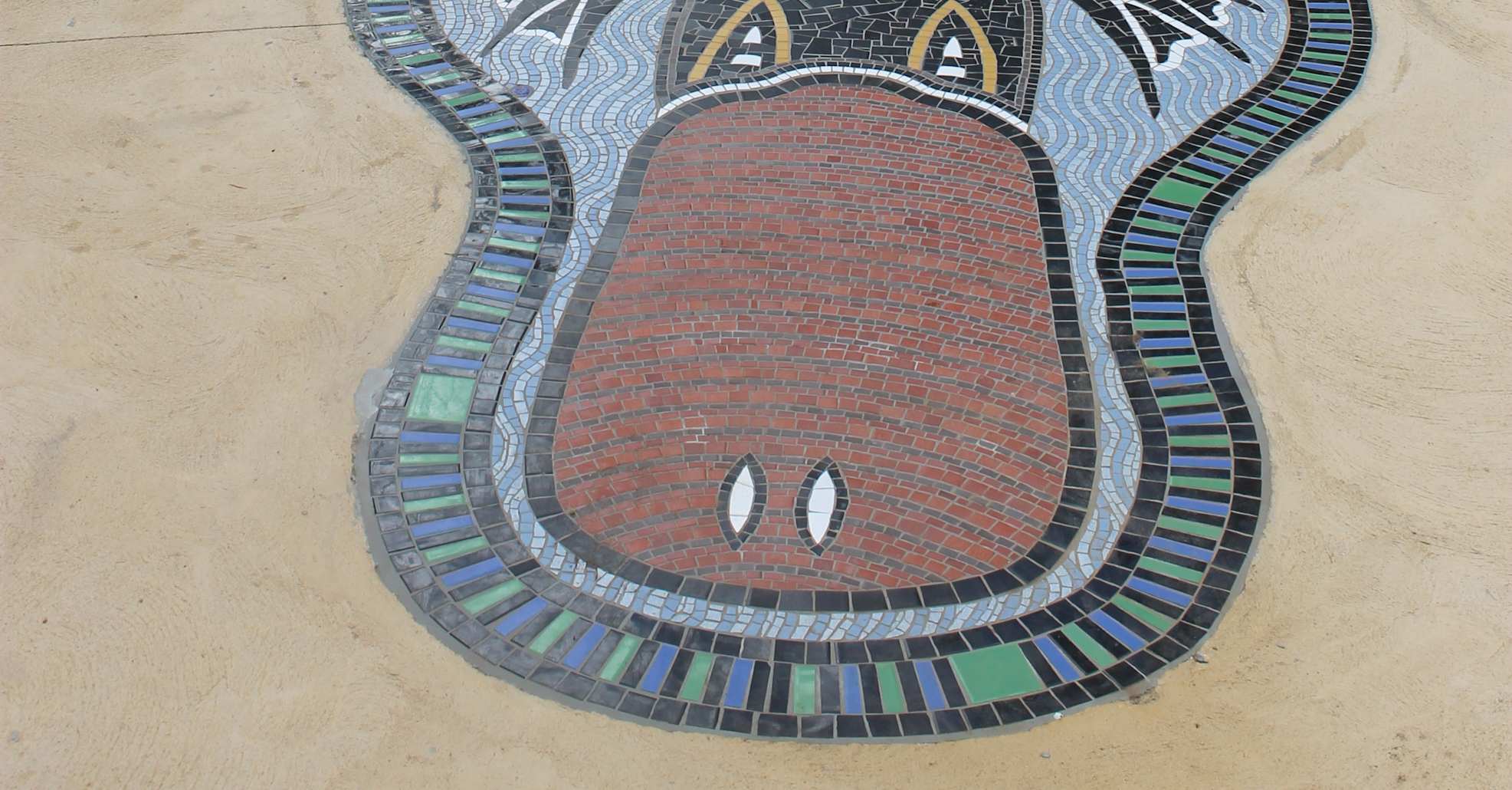 Mayor Nicholas said the new facility was so much more than a splash park, with features designed to reflect Myrtleford’s character: counter-levers to recognise local mining in the area; arbors and shelters inspired by existing local architecture; and the platypus-themed water play area inspired by the local platypus population in nearby Happy Valley Creek; finished off with a mosaic put together by the local (anonymous) Crackpots.