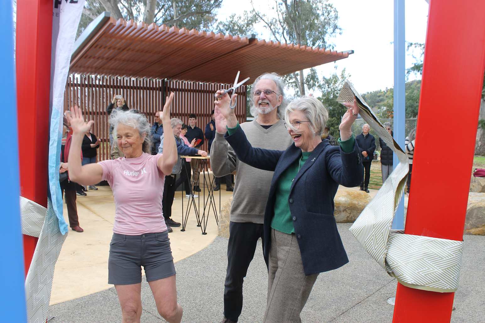 Alpine Shire Mayor Councillor Sarah Nicholas, federal MP for Indi Helen Haines and Myrtleford Chamber of Commerce and Industry president, Jim Van Geet, cut the ribbon to officially launch the new free community facility, to great applause from an enthusiastic crowd.
