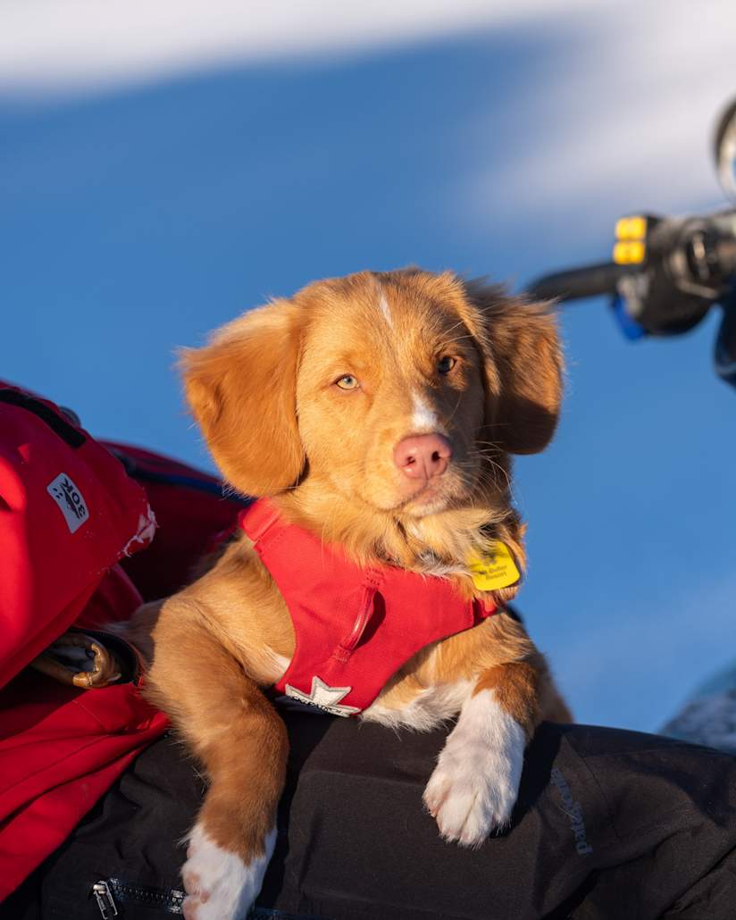 Also part of Chilli’s training this season in particular – is having fun – to ride a skidoo – welcoming her training in socializing.