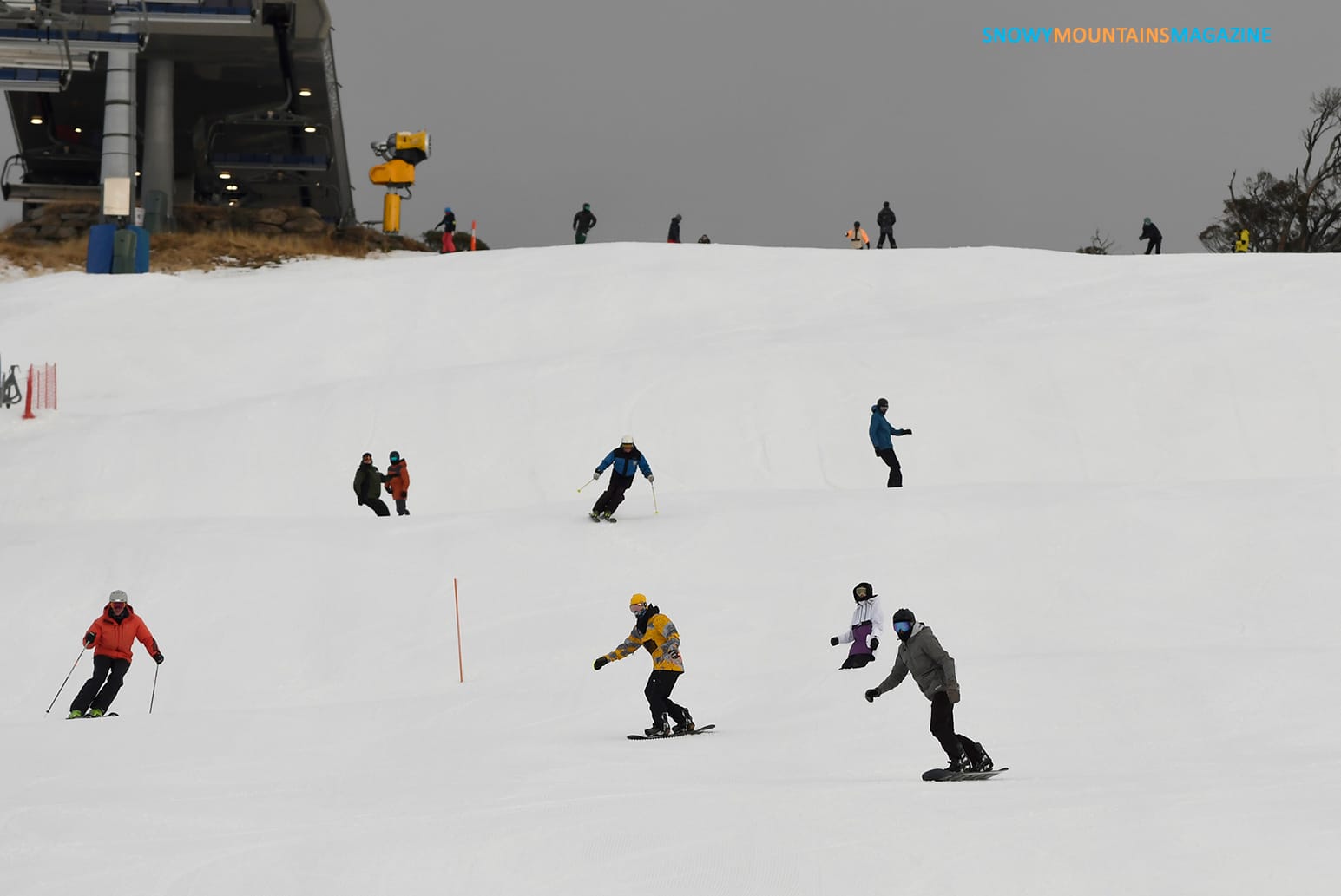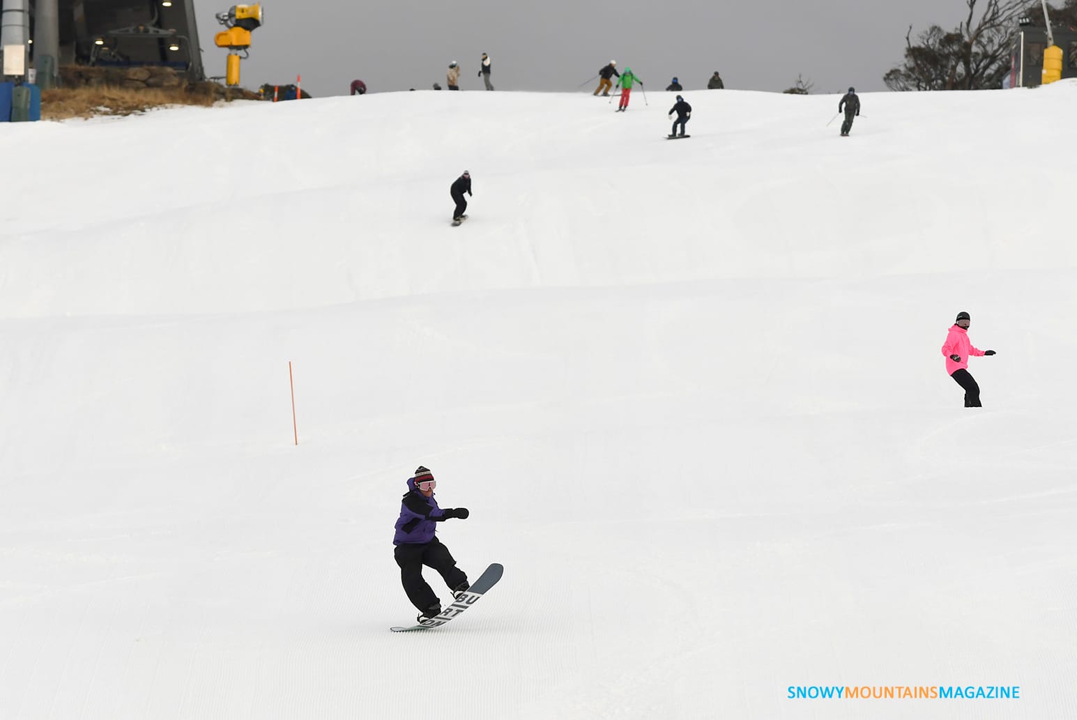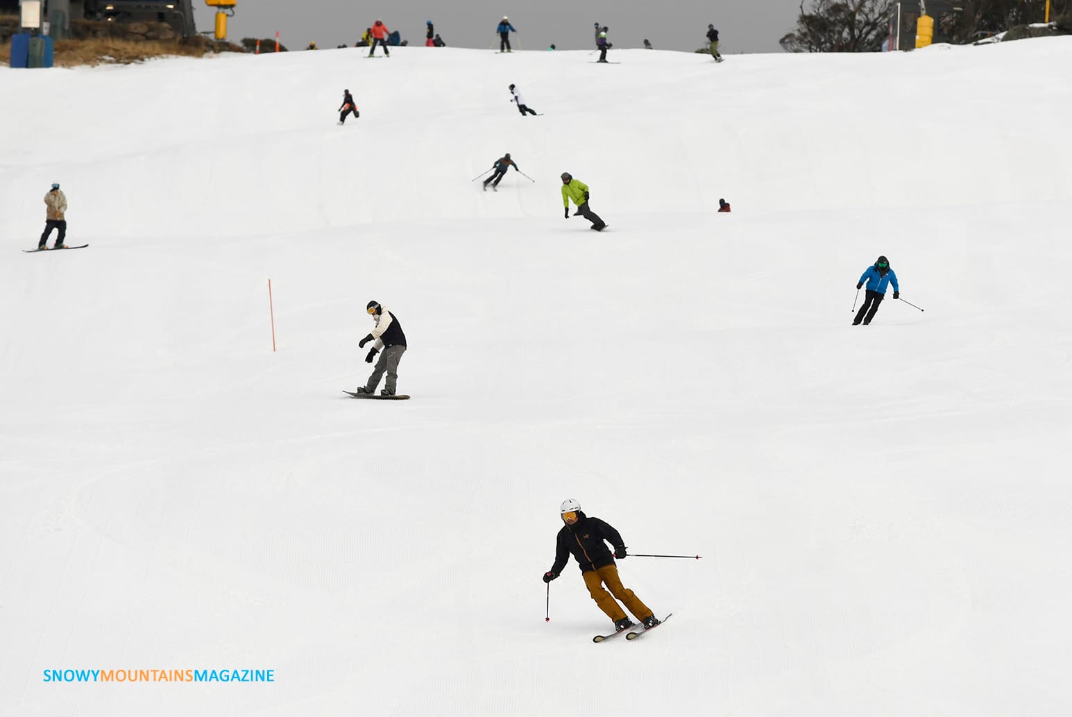With good snow falls in mid May, plus a huge effort by the Perisher snowmaking team, the Front Valley slope had a great cover. This weekend will see visitor numbers increase seeking their first season slide, and with the terrain park in operation the jibbers will surely be hitting the jumps.