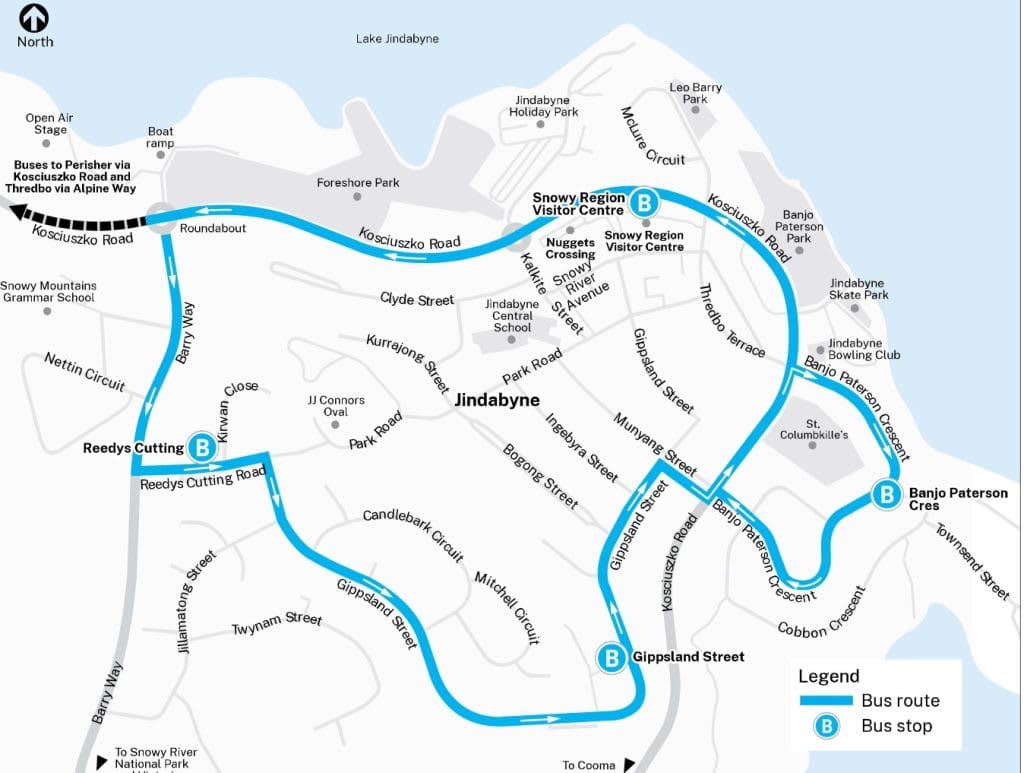 - New Cooma via Berridale to Jindabyne route morning and afternoon.