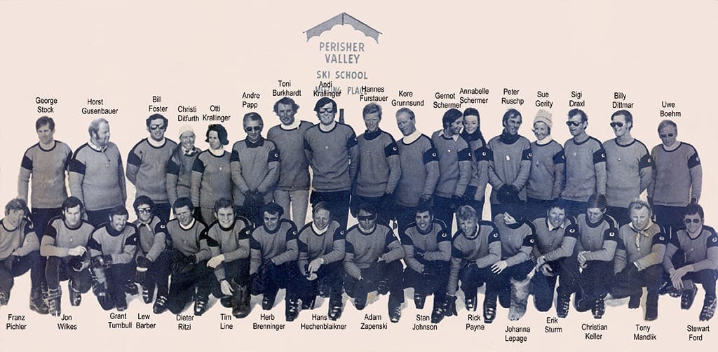 The ski industry starts to grow and in 1960’s new instructors emerge including Len Harrison, Fritz Halbwidl, Noldi Giovanoli, Andre Papp and Helmut Gritscher joining the ranks. In 1966 Andi Krallinger becomes ski school director.