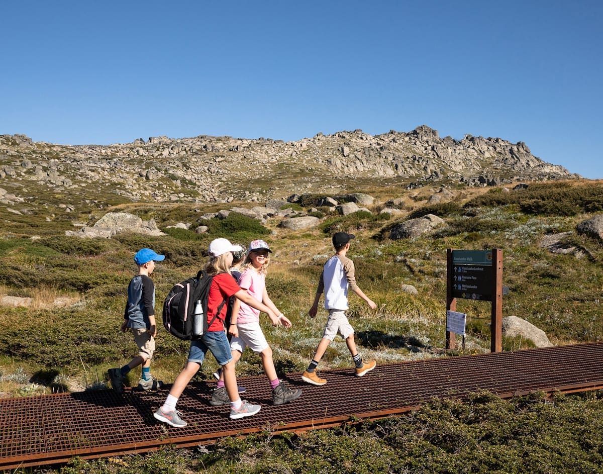 Families can explore over 37kms of mountain bike trails at Australia's only lift-accessed mountain bike park, including mountain bike lessons, or take a hike in Australia's highest mountains, including summiting the country's tallest peak, Mt Kosciuszko.