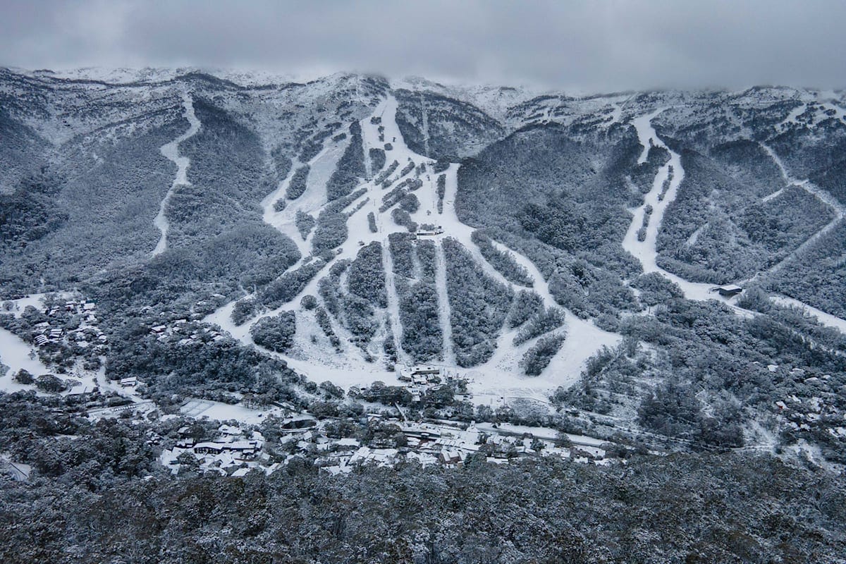 A scenic aerial view of Thredbo Resort on Wednesday morning.