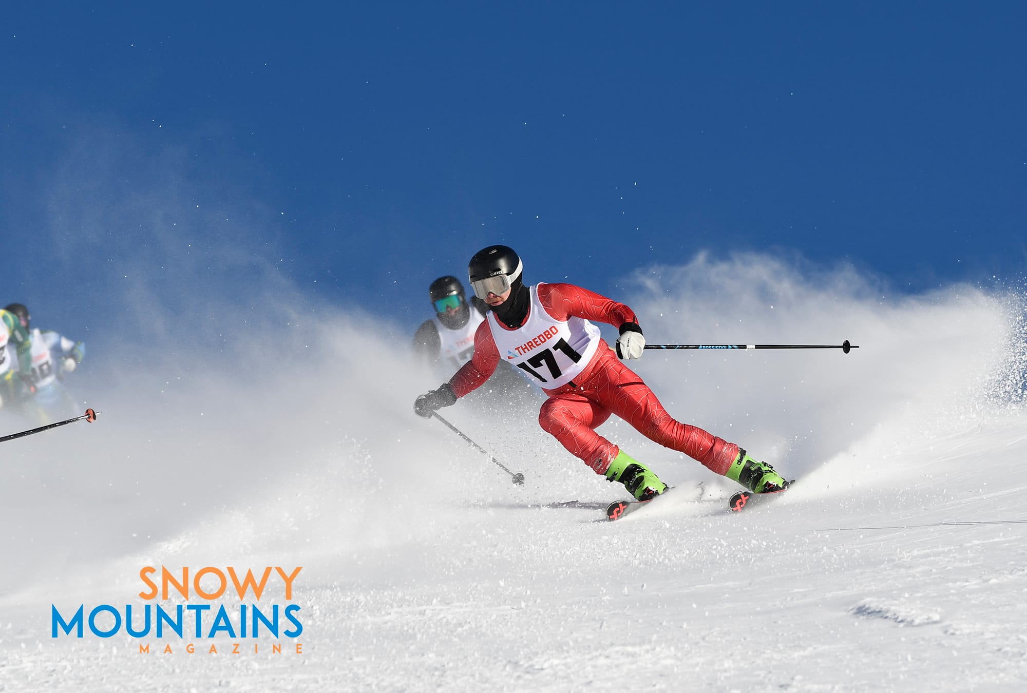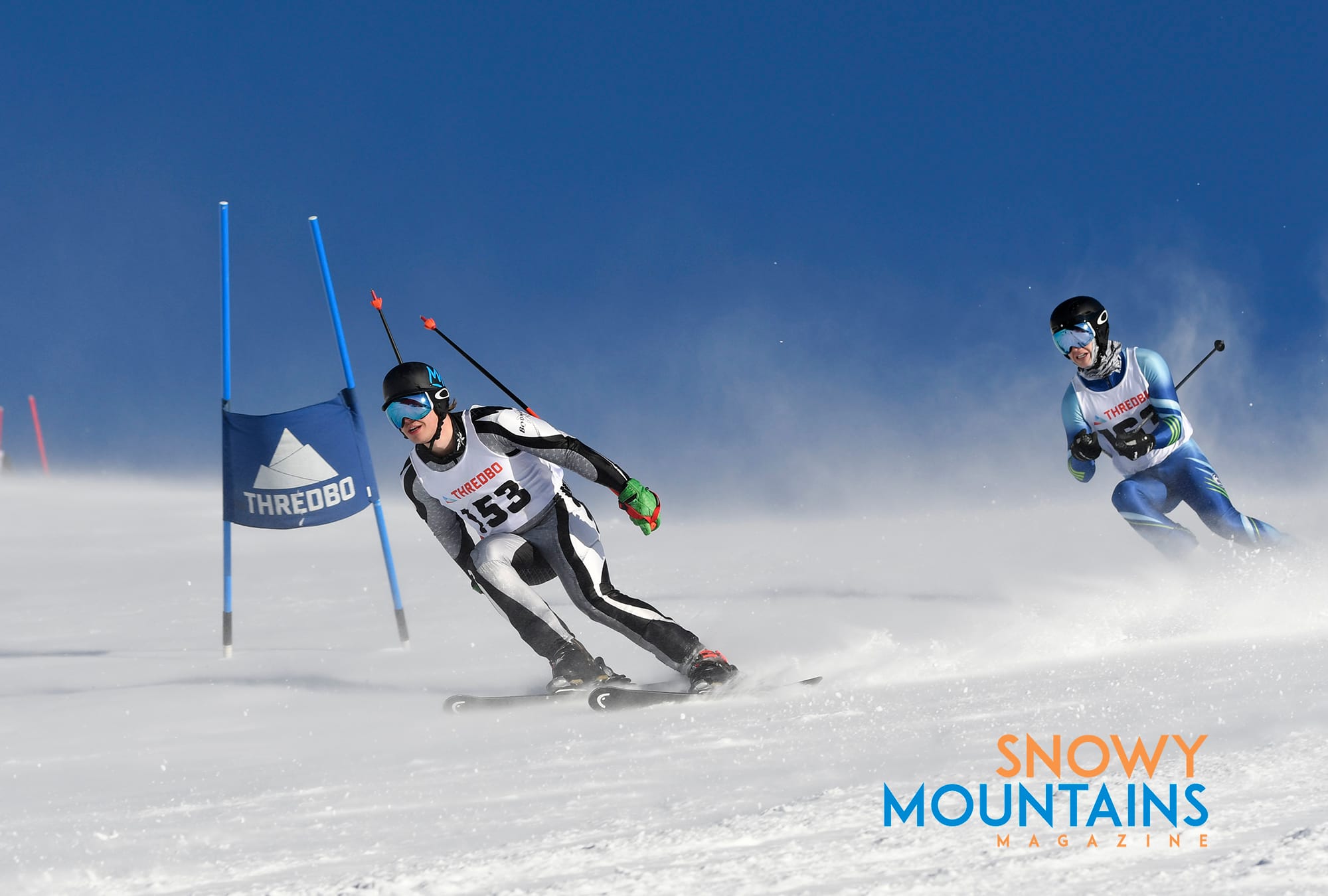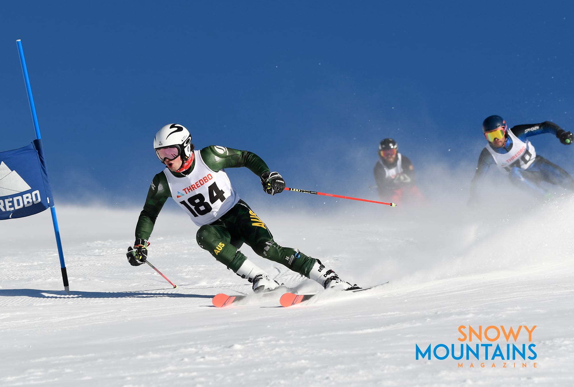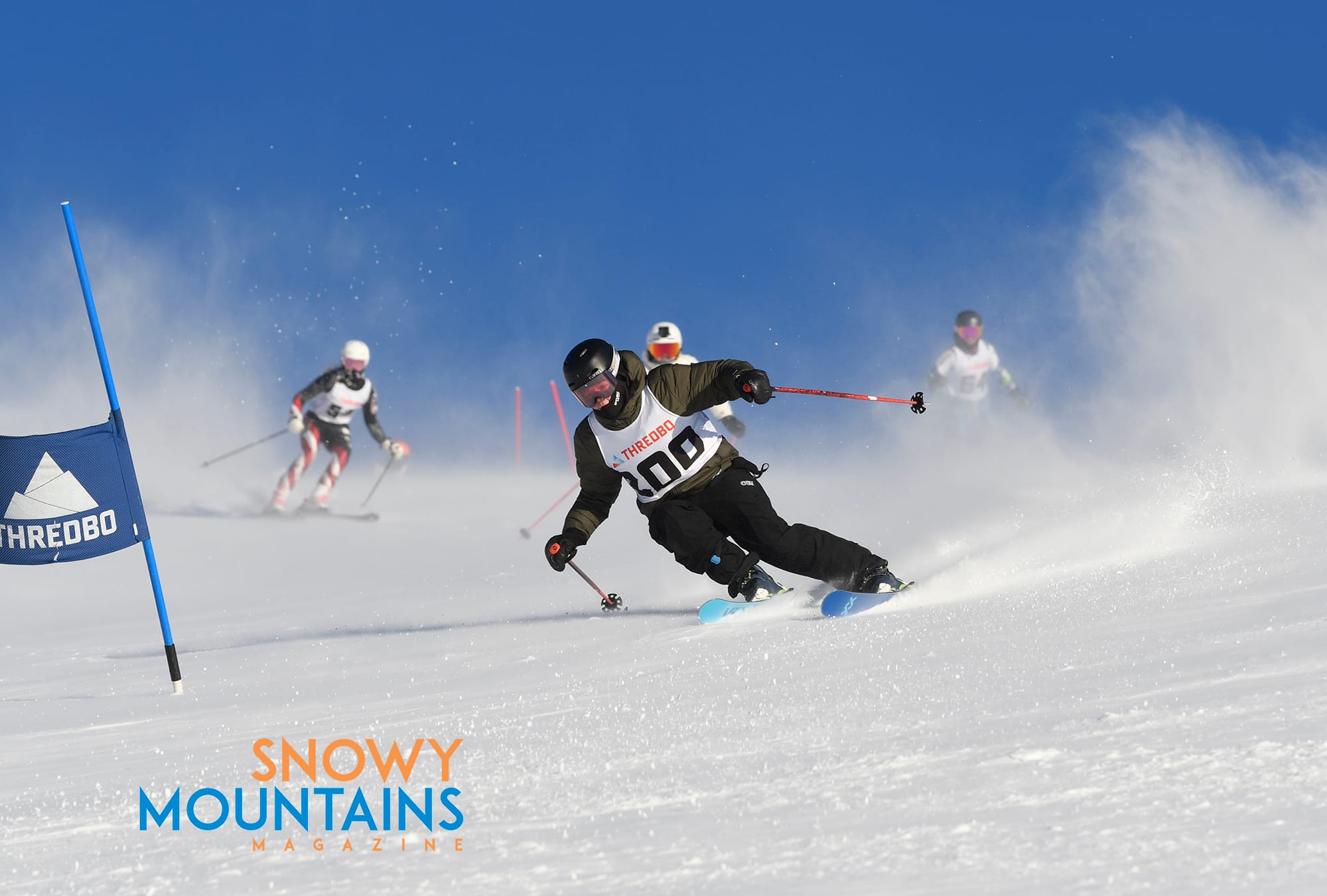 With snow flying it is best to be in front, as there are many temporary whiteouts where racers will be just aiming towards where they think the gate might be. It is best to have faith in the racers in front and you hope when you blast through the flying snow you have a clear passage ahead.