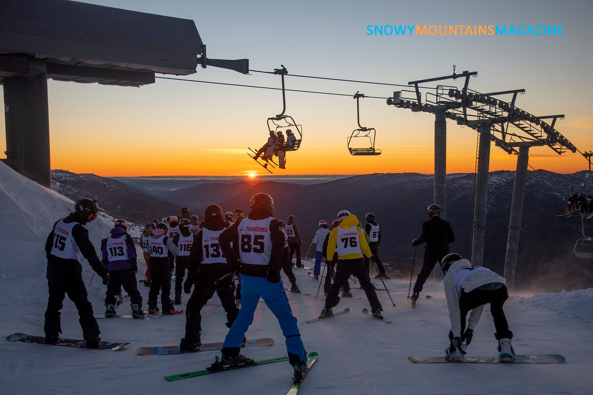 As the sun breaches the horizon on a cold and windy Thredbo morning competitors ride the chairlift and have their first glimpse of the course below.